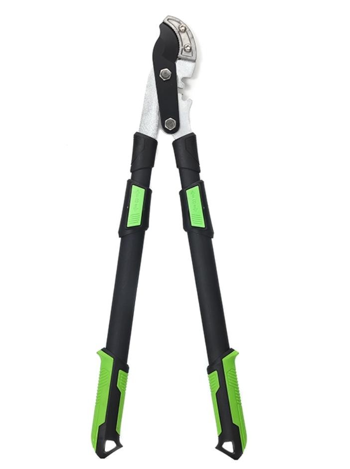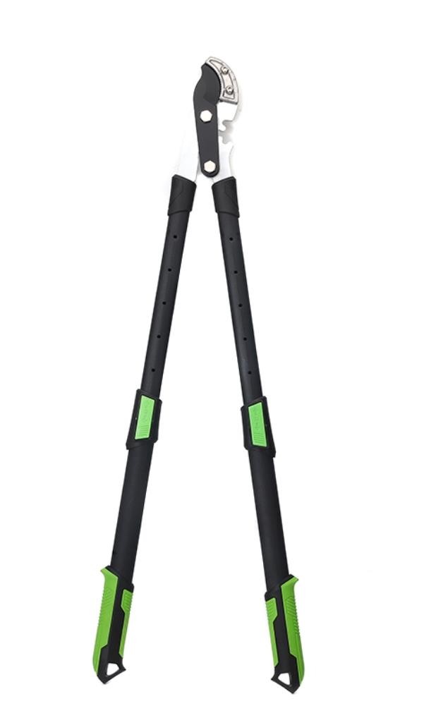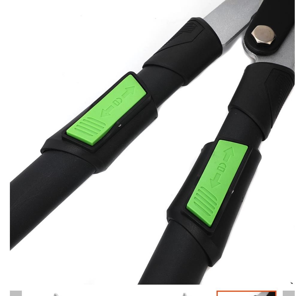 "Extendable alloy steel tube handles (up to 1.2m length) allow standing reach of 3m high branches, with anti-loosening joints for secure angle adjustment"